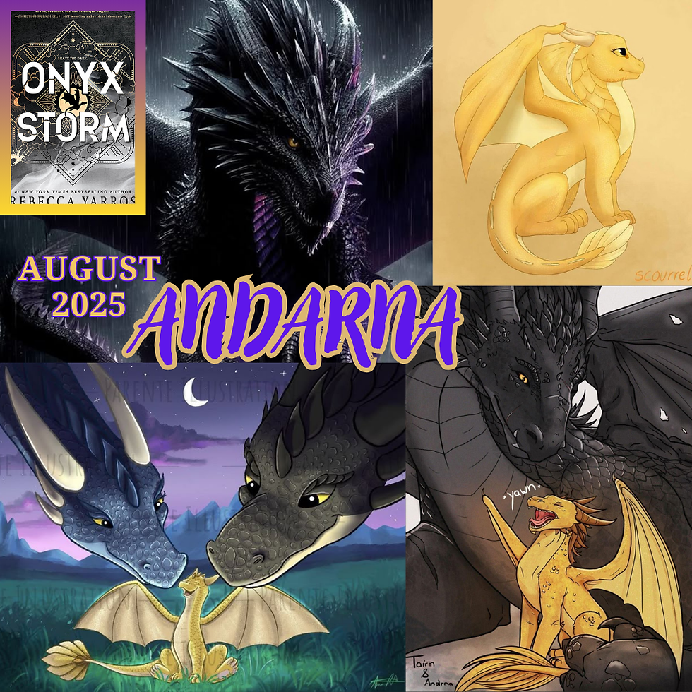 I think by now most romance and fantasy lovers have read Fourth Wing by Rebecca Yarros. I recently finished book 3, Onyx Storm, and I enjoyed it mostly for Andarna. This cute golden baby is now maturing and discovering who she is. She takes the spotlight and attention in this book, which is fine. I like her more than Xaden anyway, and the dragon lore and history are much more interesting to me than the spice scenes with the riders.